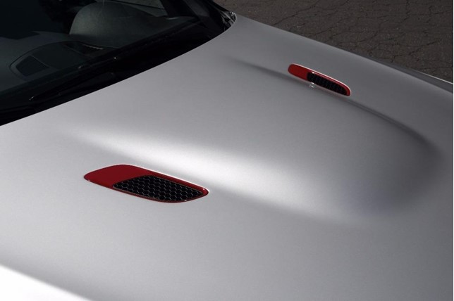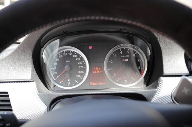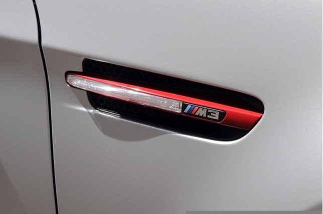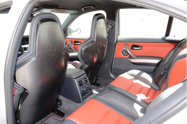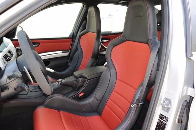 This M3 CRT is painted in a special shade of Frozen Polar Silver with unique Melbourne Red accents. It rides on 19-inch lightweight alloy wheels unique to the CRT. Also, other performance improvements include individually adjustable dampers and beefed up brakes with 6-piston calipers.