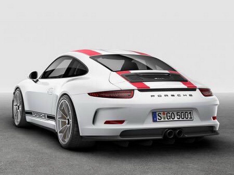 The fixed rear wing from the GT3 RS has been replaced with a conventional electronic spoiler found on the Carrera models, however it does feature a redesigned rear diffuser which is unique to the 911 R. The titanium Sport Exhaust System has been carried over from the GT3 RS.