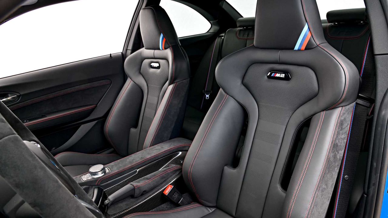 A lot of carbon-fiber has gone into the making of the 2020 BMW M2 CS with the hood, roof, front splitter, rear spoiler, rear diffuser and mirror caps getting the lightweight material treatment. The interior gets M Competition seats in the midst of acres of Alcantara and leather upholstery garnished by contrast stitching and embroidered stripes.