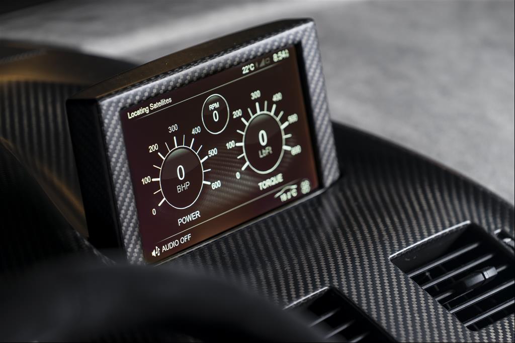 New flared carbon fibre front wings, carbon fibre bonnet, a lithium ion race-derived battery, carbon-fibre door casings, optional carbon fibre roof, optional weight-saving polycarbonate rear window and rear quarter windows are just a few of the measures which illustrate the engineers’ determination to eliminate mass wherever possible. That determination has paid off, too, as the new car weighs in at only 1,565 kg2.