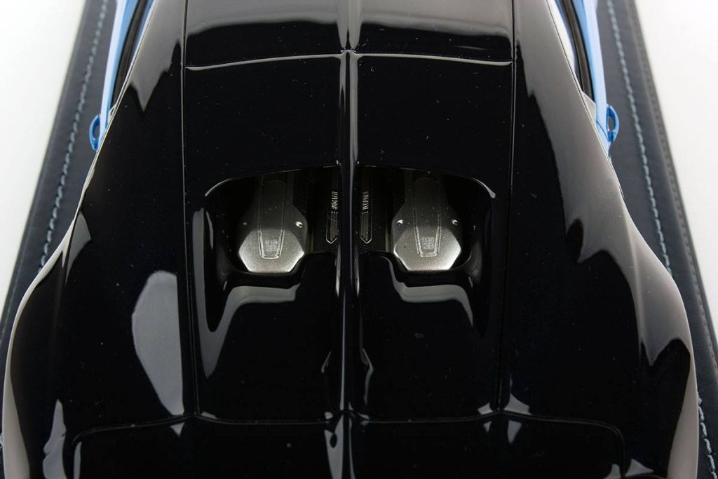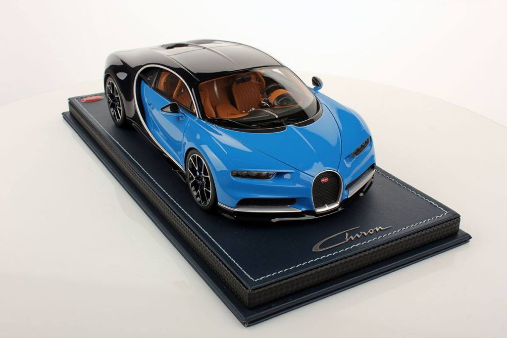 The Bugatti Chiron was officially unveiled at the 2016 Geneva Motor Show. The 1:18 scale model is the exact copy of this launch car. The craftsmanship and attention detail is just mind-boggling. Every minor detail has been reproduced including the diamond cut wheels, brake calipers and the brown interior.
