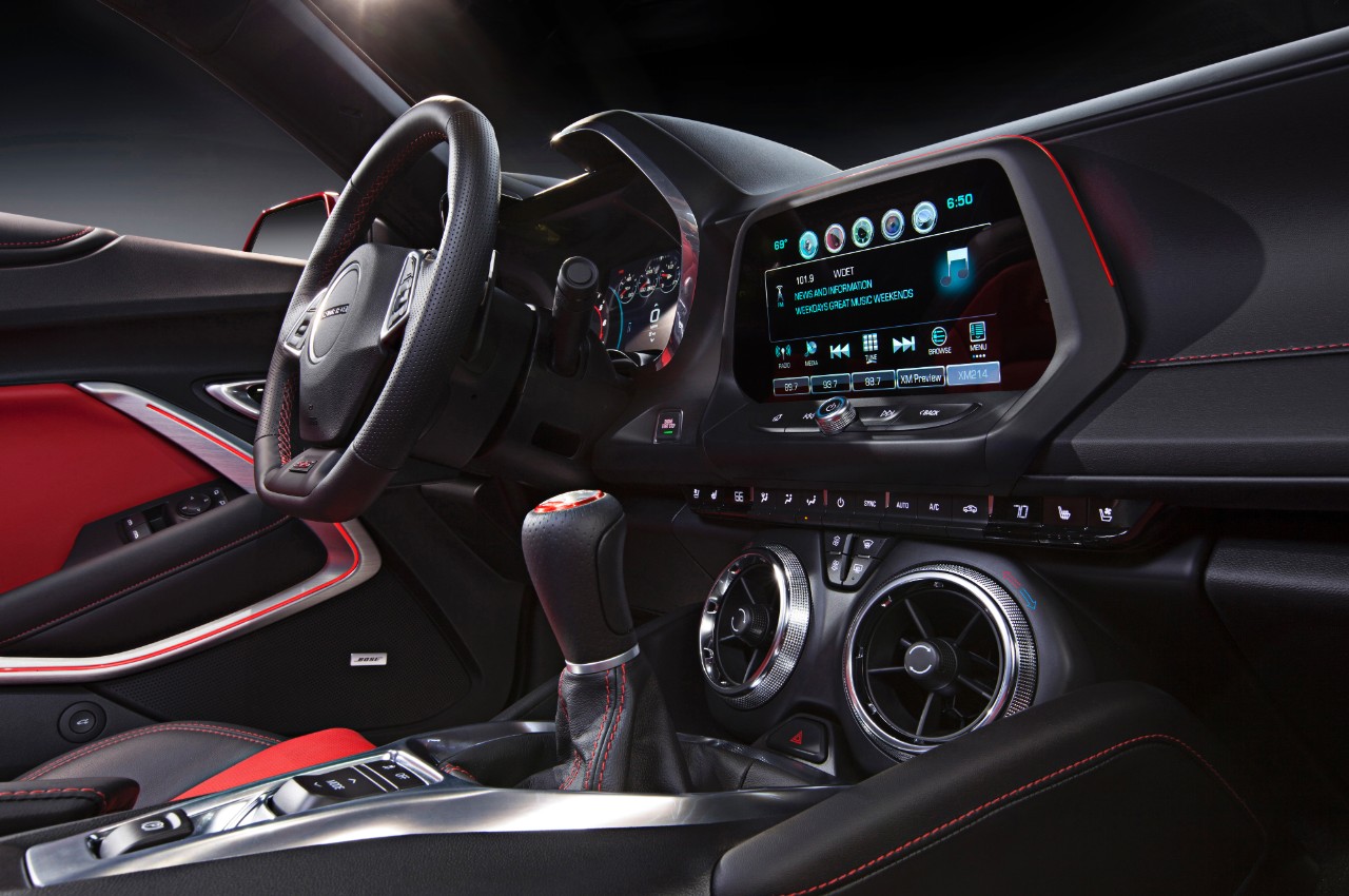 The new Camaro also gets various electronic features including a Drive Mode Selector: Snow/Ice, Tour, Sport and – on SS models – Track settings. The 2.0-liter Turbo equipped Camaro is the most fuel-efficient Camaro ever made, while the V6 version, for the first time gets cylinder deactivation technology. Both these engines can be had with a 6-speed manual or an all-new Hydra-Matic 8-speed automatic with paddle-shift. The 2.0-liter model features active noise cancellation for improved cabin comfort.
