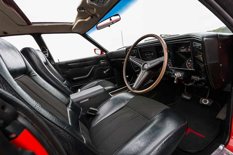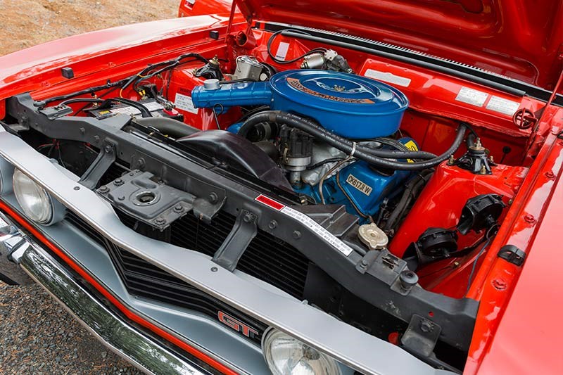Under the hood, the XA Falcon GT RPO83 boasted a 5.7-liter V8 equipped with a Holley 780 carburettor, 2.25 inch exhaust headers and a clutch slave cylinder hydraulic pipe heat shield. The engine produced 334 hp and 380 lb-ft of torque mated with a 4-speed manual transmission.