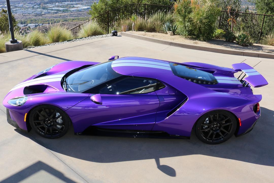 Just days after Vaughn Gitting Jr. took delivery of his stealth spec Ford GT, another racing driver has received the keys to his new supercar. This time it’s IndyCar driver Graham Rahal with one of the most extra-ordinary specs we’ve seen on the Ford GT yet. Rahal’s Ford GT is finished in a vibrant purple with silver stripes and black wheels for contrast that make up for one hell of a good looking machine.