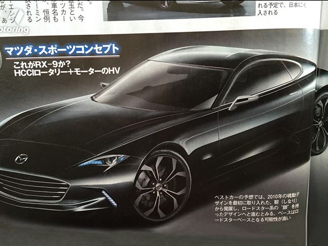 Meanwhile, a Japanese magazine has published a couple of images of what looks like the Mazda RX-9 we’ve been waiting for. Did the publication just leaked the new RX-9? Well, it looks pretty legit and even has a familiar Mazda face borrowed from the new MX-5. The classic coupe shape and those tail lights clearly point to the RX-7 – one of Japans greatest sports cars.