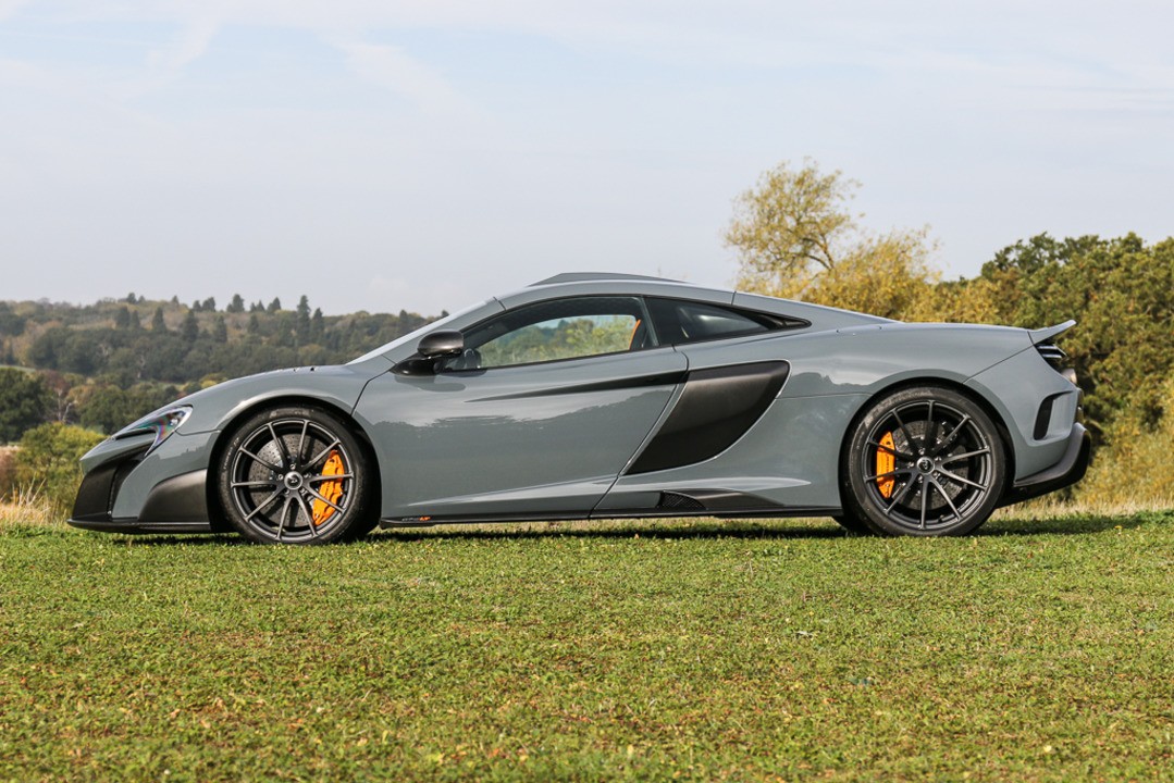 One of only 500 cars built, this 675LT coupe is finished in a Chicane Grey exterior with a grey and orange interior. It has ultra-lightweight 10-spoke stealth wheels, ceramic brakes with orange calipers, McLaren track telemetry, McLaren Club Sport package and carbon fiber upgrade packages for both the exterior and the interior.
