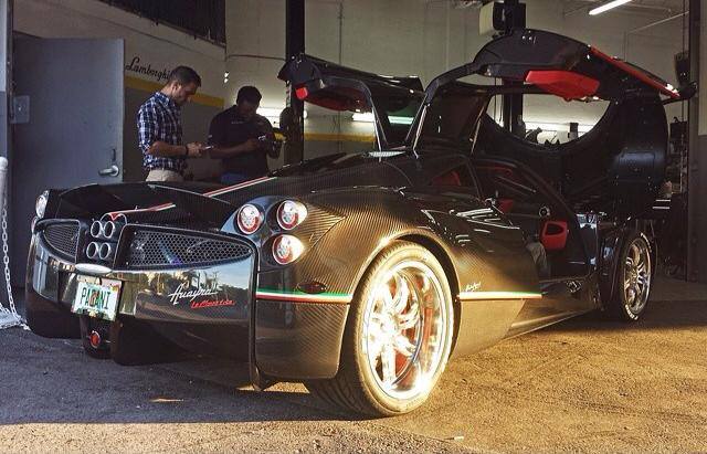 Kris Singh has taken delivery of his Pagani Huayra. His latest acquisition was first snapped by Prototypezero and has since then been the talk of the town. The unique Pagani Huayra was spotted in Miami sporting bare carbon fiber bodywork and liveries from the Zonda Revolucion. The personalized license plate on his Huayra reads “Pagani” which is a nice touch.
