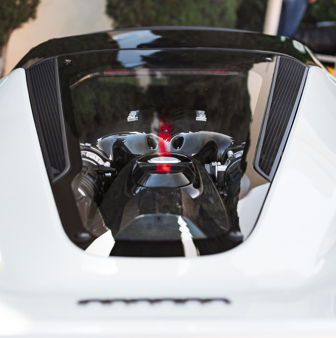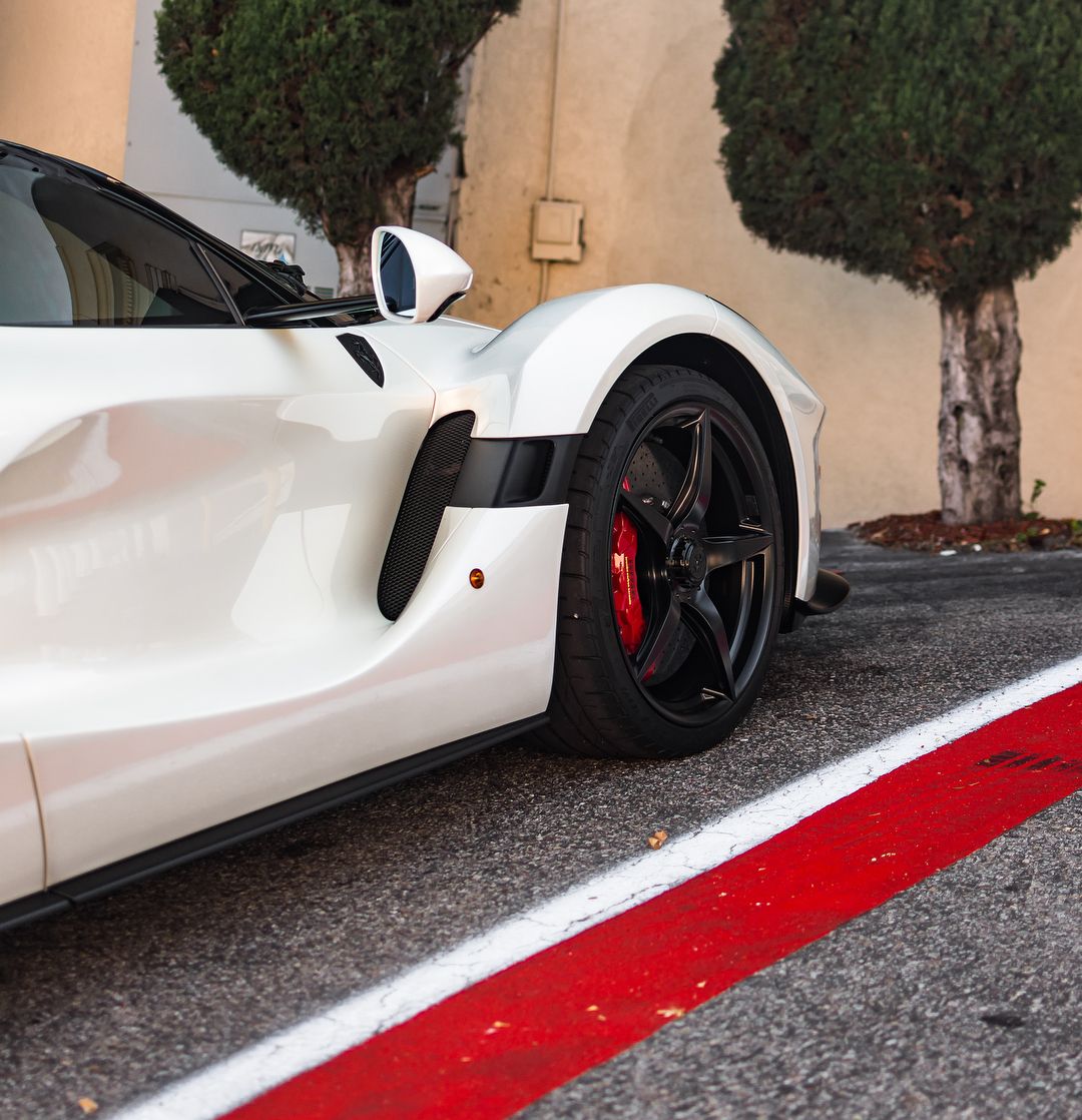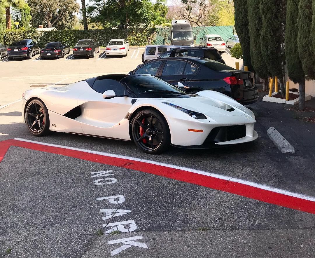 Hamilton’s LaFerrari Aperta was spotted around Beverly Hills, CA on its first outing recently. The spec looks impressive to say the least. Unlike his red LaFerrari coupe, the Aperta is finished in gloss white with black and carbon fiber accents as well as red brake calipers.