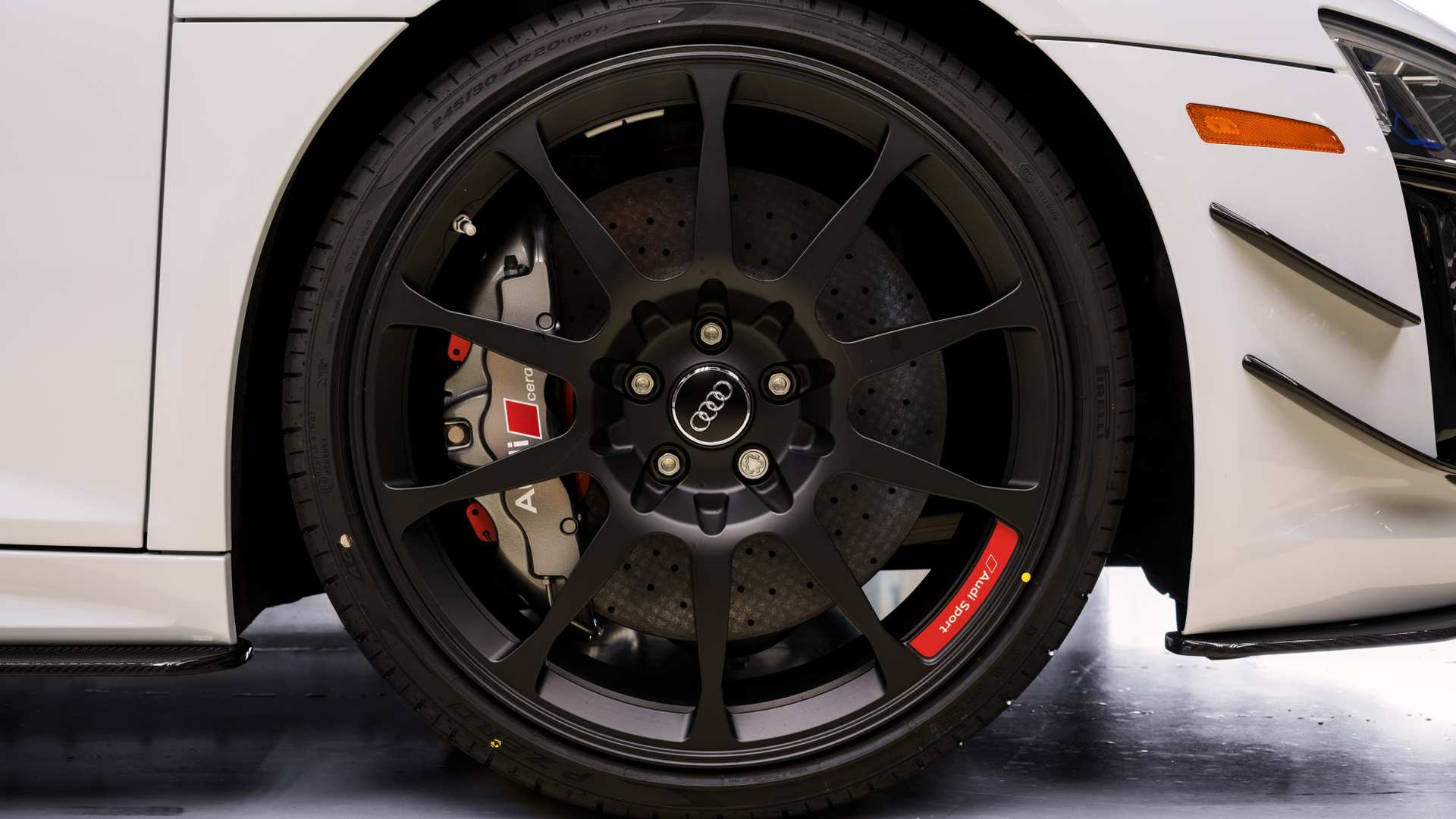 While output from the naturally aspirated V10 remains the same at 610 horsepower and 413 pound-feet of torque, Audi has worked hard to reduce vehicle weight and increase downforce over the V10 Plus. Without disclosing the exact weight figure, Audi points out that the 20-inch fully milled wheels help save 26.4 pounds whereas 2.2 pounds is saved by using titanium backing plates for the carbon ceramic brake pads. A number of components are now made from carbon fiber including the fixed rear wing, side sills, front spoiler, flics and rear diffuser.