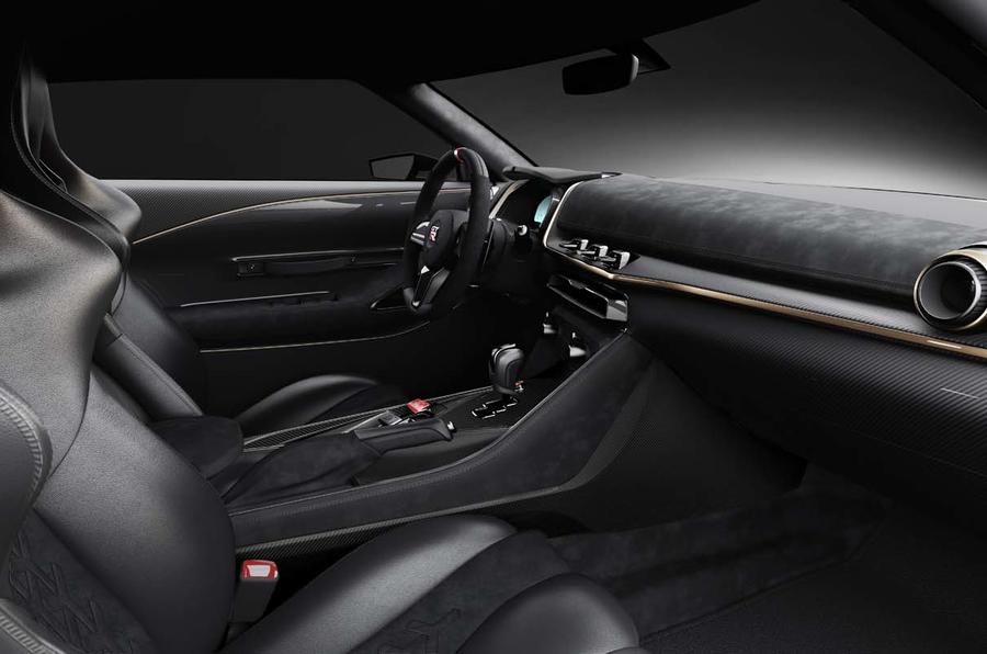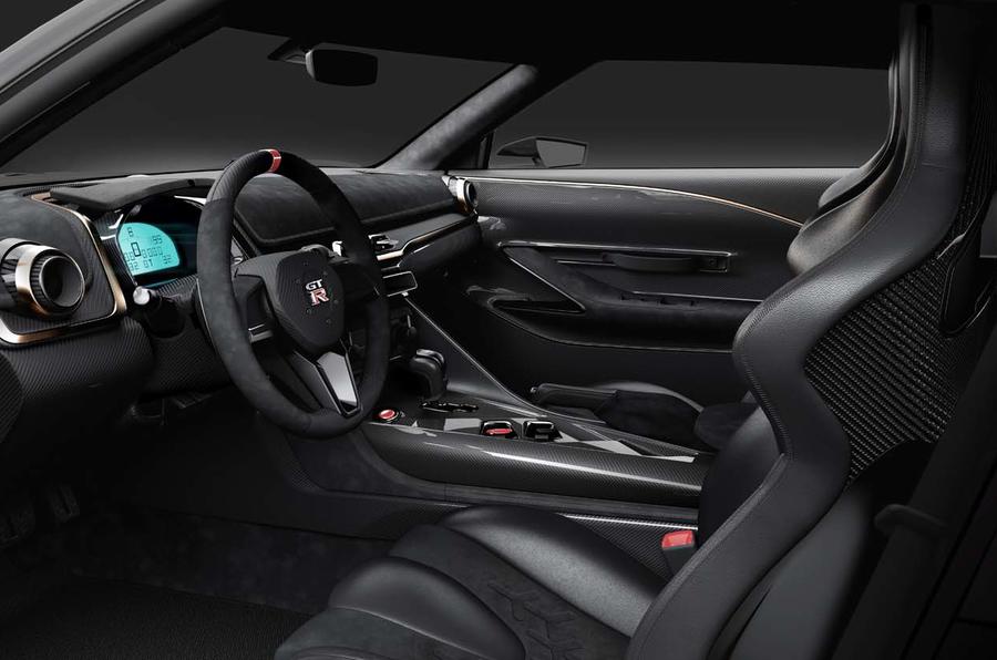 If the standard car wasn’t fast enough, the GT-R50 has been upgraded with a 3.8-liter twin-turbo V6 pushing out an estimated 710 horsepower and 575 lb-ft (780 Nm) of torque compared to 592 bhp and 481 lb-ft (652 Nm) in the Nismo. The car has also been fitted with race-spec turbochargers, a larger intercooler system, adjustable dampers, heavy-duty crankshaft, pistons, bearings and connecting rods. Further, an upgraded intake and exhaust systems help achieve the 118 hp boost.