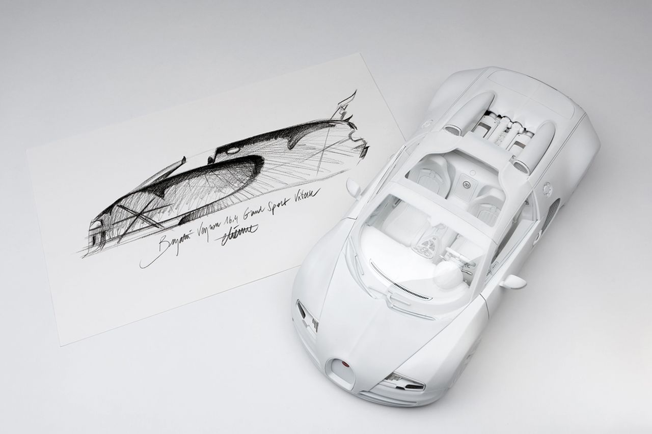 The model also comes with a certificate, a signed plaque, a display case and an original sketch of the Veyron Grand Sport Vitesse by the Bugatti designer himself.