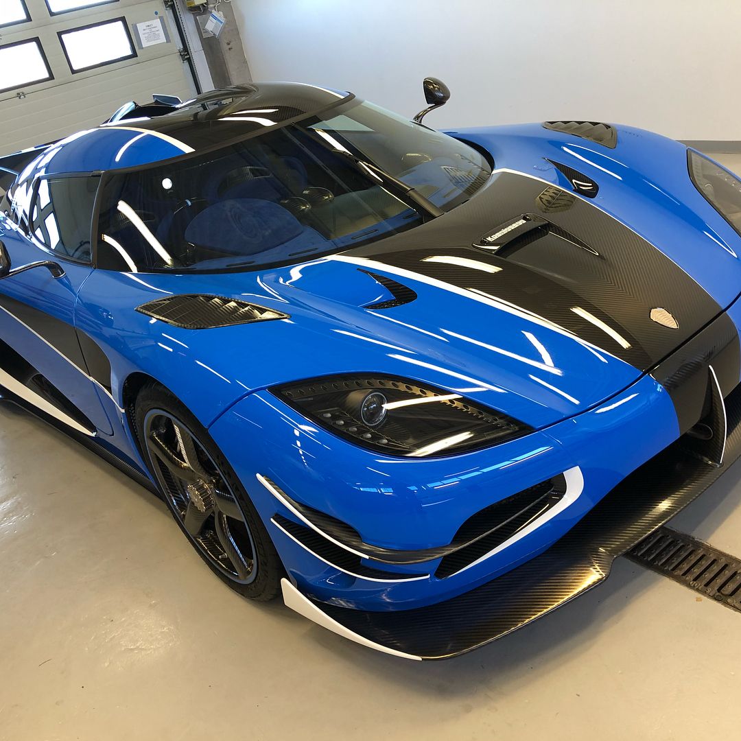 The Koenigsegg Agera RSN is yet another one-off creation that was recently delivered to its owner (Instagram: @neildmr). The Agera RSN is finished in a dual-tone of blue with exposed carbon fiber and white accents. The interior of the car is a blend of blue Alcantara and carbon. Also, the Agera RSN is among the few right-hand drive Ageras to come out of the Angelholm factory.