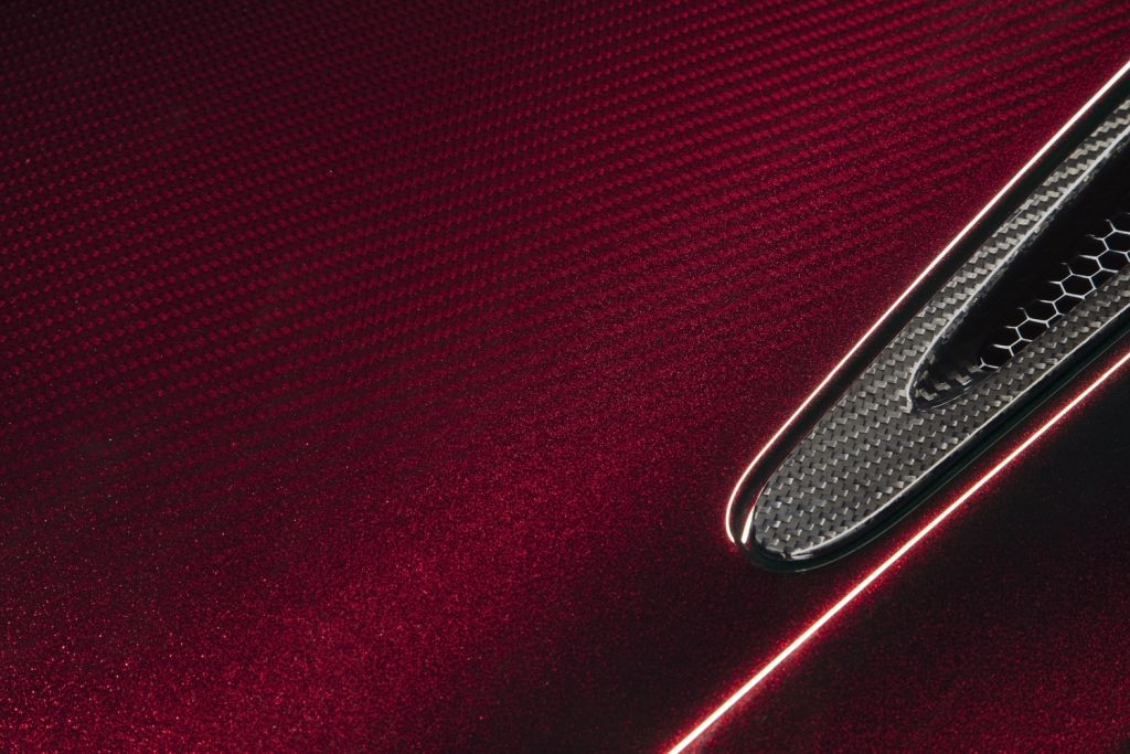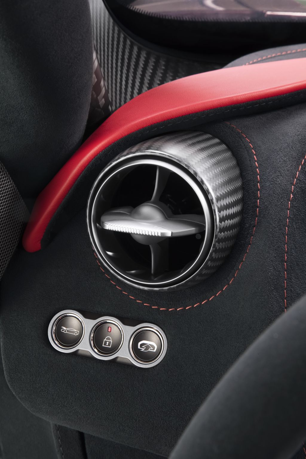 - Full Carbon Black Alcantara® Facia with Harissa Red Leather IP Topper Centre and IP Topper Driver Side (Harissa Red contrast stitch on all stitch lines)