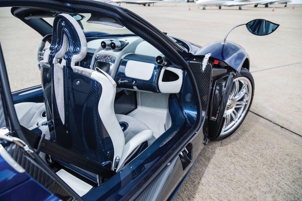 RM Sotheby’s has some gorgeous automobiles for sale this time around and the list of blue-chip supercars includes this unique 2014 Pagani Huayra finished in visible carbon bodywork and Blue Argentina lacquer.