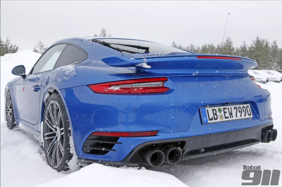 The Porsche 911 GT2 RS prototype which was spotted by spy photographers can be seen sporting a black bonnet that resembles the carbon fiber hood fitted to a 997 GT2 RS. The exhaust system on the upcoming GT2 RS would probably be bespoke to the model. It seems to be a newly developed exhaust featuring bigger, perforated quad-exhaust tips.