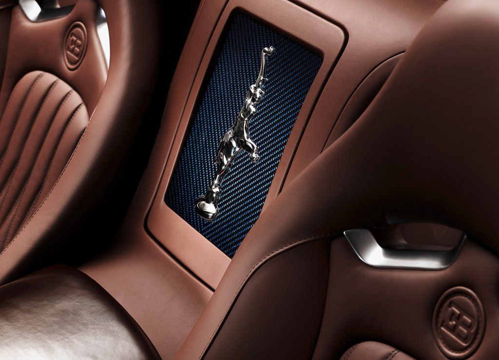 The interior of the car is wrapped in natural brown leather upholstery and natural cordovan leather. Contrasting blue is carried over from the exterior to the seats, rear center box cover and door trim. A platinum coated ornament sculpted by Rembrant, Ettore Bugatti’s brother sits proud on the rear center box cover. The price of all of this luxury, exclusivity and performance is $3.14 million.